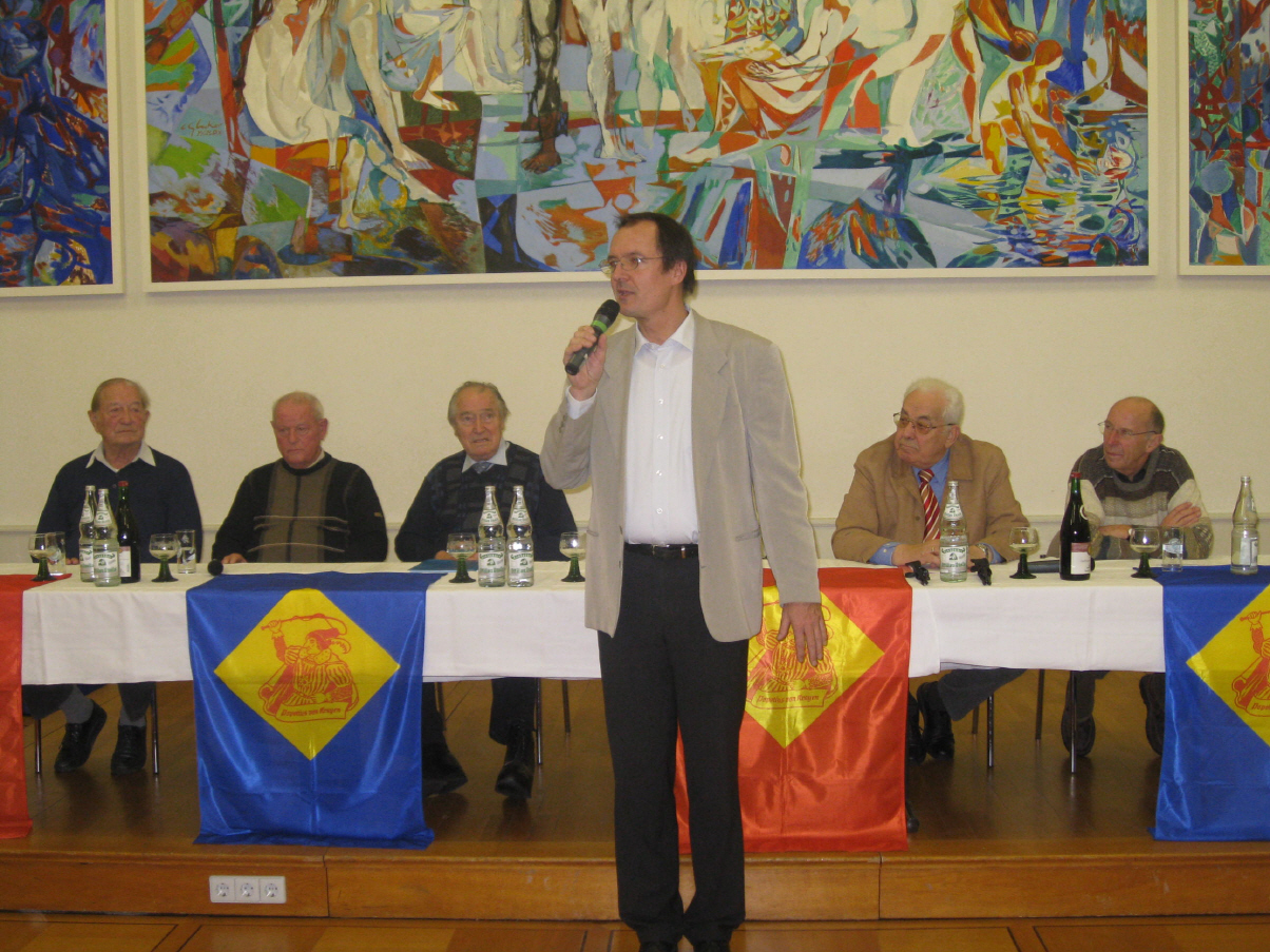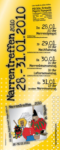 Spannende und vor allem närrische Geschichten über die Fasnet in Singen der letzten Jahrzehnte wussten Karl Glunk, Willy Kornmayer, Peddi Schwarz, Paul Saur und Franz Götz sehr zur Unterhaltung des Publikums im Bürgersaal zu berichten. Moderator Stephan Glunk lies nochmals das Leben der Singener Originale GOSCH und BIPPUS wahrhaftig lebendig durch die Referenten werden. Die Geschichten um die wochenlangen und aufwendigen Dekorationen der Scheffelhalle, die Höhepunkte in den Narrenspiegeln, die Rathauserstürmung, die erlebten Narrentreffen, trugen zu einem sehr kurzweiligen Abend der Zuhörer bei. Insgesamt ein sehr gelungener und unterhaltsamer Abend, der die Lust und Freude auf das bevorstehende 150-jährige Jubiläum der Poppele-Zunft weckte.