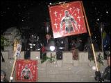 Über 50 Zünfte, über 1000 Hästräger und ungezählte Zuschauer machten Freitagabend in Singen die Nacht zum Tag – und am Ende trafen sich alle im Narrennest zwischen Hohgarten und Offwiese zum heißen Fest in eiskalter Nacht. Das Wetter hat den Jubel-Narren zwar nicht in die Hand gespielt, als Freitagabend mit einem großen Nachtumzug die Singener Poppele-Zunft ins Fest-Wochenende zum 150-jährigen Jubiläum der organisierten Fasnet unterm Hohentwiel gestartet ist. Gefehlt hat gestern Abend in Singen ein großer Schutzschirm. Doch davon haben sich die Narren trotz Schneegestöber nicht vom Feiern abhalten lassen. „Lieber Schnee als Regen“, bilanzierte Zunftmeister Stefan Glunk aus seinem reichen Erfahrungsschatz. Nicht gefehlt haben zahlreiche Geburtstagsgäste. Befreundete Zünfte von Nah und Fern waren gekommen, um das Narrenfest im Narrennest zu feiern. Und das Publikum feierte ausgelassen mit. Groß war die Überraschung bereits zu Beginn des großen, nächtlichen Umzugs, als die „Kuranti“ aus dem slowenischen Markowsci mit ihren imposanten, Fell- und Feder-geschmückten Kostümen für diabolische Stimmung in den Straßen sorgten. Und über eine Stunde verfolgten die Besucher des Umzuges das närrische Treiben trotz Schneegestöber und Minusgraden, um dann ins Narrennest zu strömen, um in einem der Festzelte oder der „Spaßgaraasch“ unter dem Hohgarten ausgelassen weiter zu feiern, während auf der Poppele-Bühne beim Rathaus verschiedenste Zünfte ihre Traditionen in Brauchtumsvorführungen einem interessierten Publikum präsentierten. Trotz frostiger Temperaturen war die Stimmung im Poppele-Zelt auf der Offwiese in kürzester Zeit auf dem Siedepunkt. Hier – oder in einer der vielen Besenwirtschaften – trafen sich die Narren nach dem Nachtumzug.