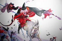reitet an anderer Stelle hoch zu Ross und mit