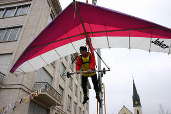 Scheffelhalle vor dem Rathaus eingesetzt und alle Vorbeiziehenden bei der "Schutzüberbauung