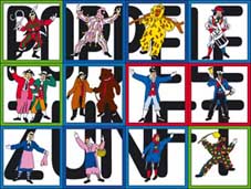 Poppele-Figuren vollzählig in Aktion. Es sind