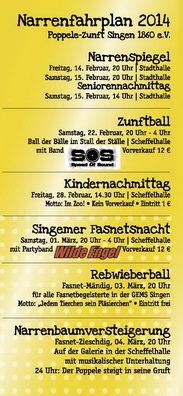 04.02.2014 Aktuelle Ausgabe "De Poppele mont" Fasnet 2014 Informationen, Neuigkeiten, Veranstaltungen, Saalwachen, Narrentreffen, Kartenvorverkauf zur Fasnet 2014